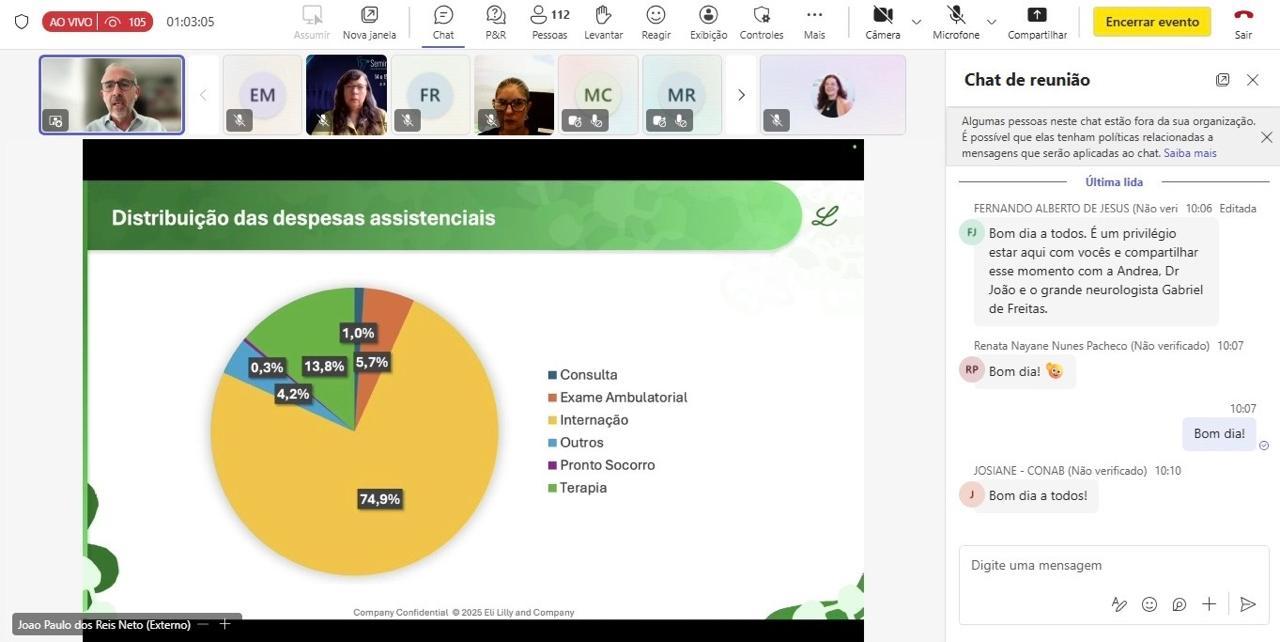 As palestras foram conduzidas por João Paulo dos Reis Neto, presidente da CAPESESP e diretor técnico da UNIDAS, e por Gabriel Freitas, neurologista e pesquisador do Instituto D’Or. Os especialistas abordaram temas como o perfil dos pacientes, critérios de elegibilidade, desfechos clínicos e os benefícios do diagnóstico em fases iniciais da doença.
